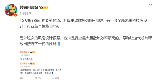 【CNMO科技消息】12月30日,数码博主“数码闲聊站”曝光称,iQOO 15 Ultra已确定将于春节前正式登场。这款新机将升级搭载主动散热风扇及物理肩键,并采用一套全新的未来科技感设计。值得一提的是,iQOO将这款新机定位为“行业首个性能Ultra”。